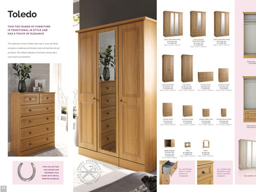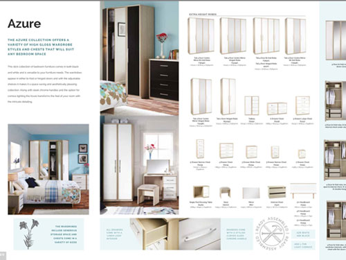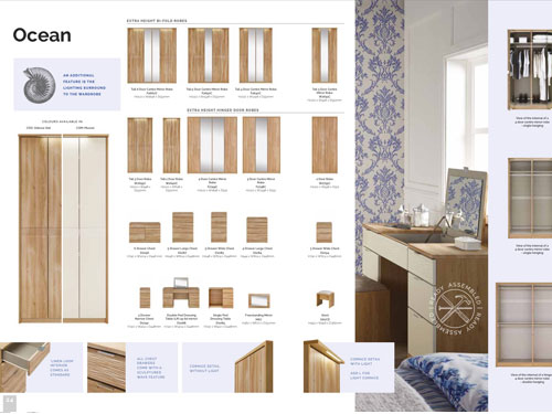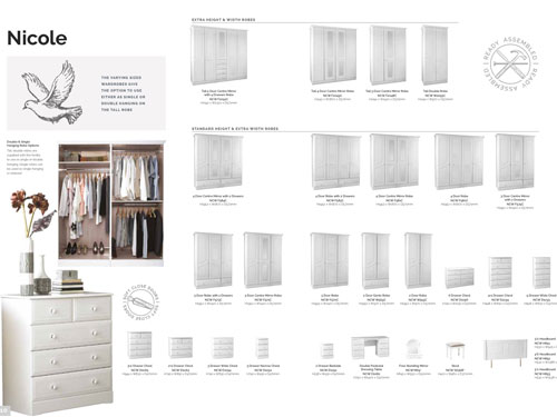 A large range of bedroom furniture offered in a choice of colours which include white, beech, oak and walnut (also available in high gloss doors in black or cream).