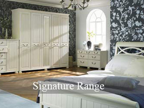 Superior collection of bedroom furniture offering extra deep drawers with pewter and ceramic handles.